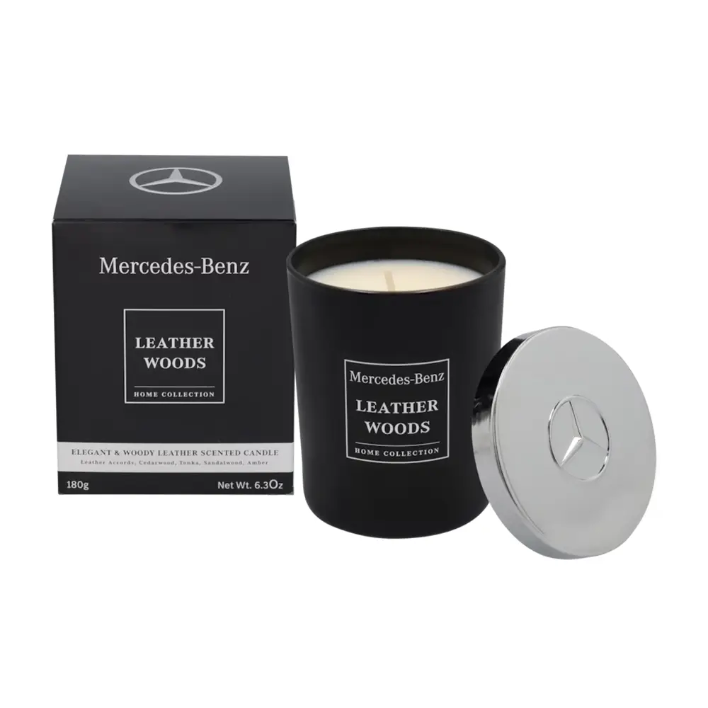 Genießen Sie die luxuriöse Atmosphäre der Mercedes-Benz Duftkerze Leather Woods, inspiriert von feinem Lederhandwerk. Die edle Komposition aus Tabak, Zedernholz, Sandelholz und Bernstein entfaltet sich sanft im Raum und sorgt für ein warmes, elegantes Ambiente. Gefertigt aus 100 % farbstofffreiem Pflanzenwachs mit einem Docht aus reiner Baumwolle, vereint diese Duftkerze Nachhaltigkeit mit höchster Qualität.