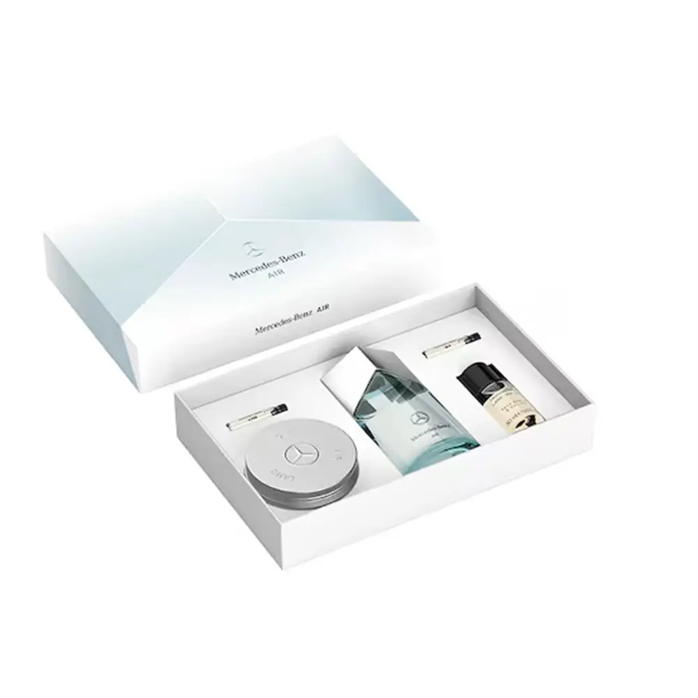 Die Kraft der Elemente – das Geschenkset AIR Eau de Parfum: Inspiriert von Luft, Wasser und Erde, vereint die Duft-Trilogie von Mercedes-Benz die Essenz der Natur. AIR steht für grenzenlose Freiheit mit einer frischen Komposition aus Engelwurz und belebenden Zitrusfrüchten, während blumig-holziges Patchouli die Basis aller drei Düfte bildet. Ergänzend zum Eau de Parfum enthält das Set Produktproben der Düfte SEA und LAND sowie ein festes Duschgel und ein pflegendes Öl – für ein rundum sinnliches Dufterlebnis.