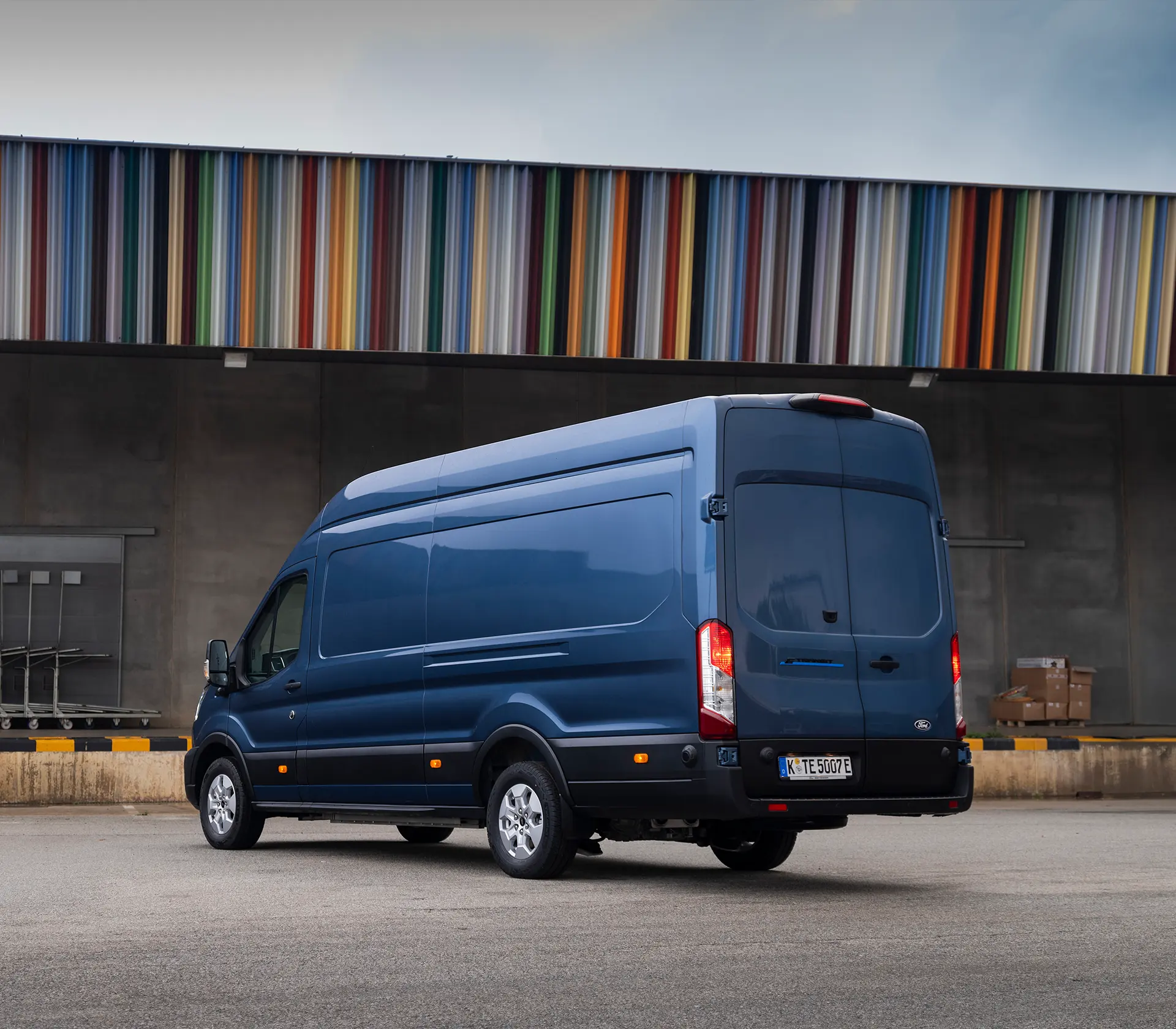 Das Exterieur des Ford E-Transit verbindet modernes Design mit echter Alltagstauglichkeit und zeigt, wie smart und fortschrittlich Elektromobilität heute sein kann. Die geschlossene Frontpartie und die klare Linienführung sorgen für eine beeindruckende aerodynamische Effizienz – die spürbar zur Reichweite beiträgt. Der windschnittige Aufbau reduziert Luftwiderstand, während die markante Silhouette dem E-Transit eine ausdrucksstarke Präsenz verleiht. Kraftvoll im Ausdruck, ruhig im Charakter – das zeichnet den vollelektrischen Transporter aus. Mit einer großen Ladeöffnung, weit öffnenden Heckflügeltüren und bis zu 15,1 m³ Laderaum ist er auf Nutzbarkeit ausgelegt. Ob für die Baustelle oder Paketauslieferung – der E-Transit ist vielseitig und passt sich Ihren Anforderungen an. Im E-Transit Doppelkabine ist ausreichend Platz für das Team, der vielseitige Pritschenwagen ermöglicht maßgeschneiderte Aufbauten und der Kastenwagen bietet großzügigen Stauraum. Flexibel, robust, modern und funktional: Der E-Transit definiert, was einen zeitgemäßen Transporter auszeichnet.