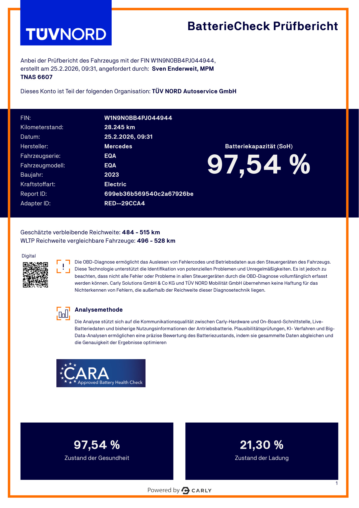- ZERT Das Fahrzeug verfügt über ein Batterie Zertifikat