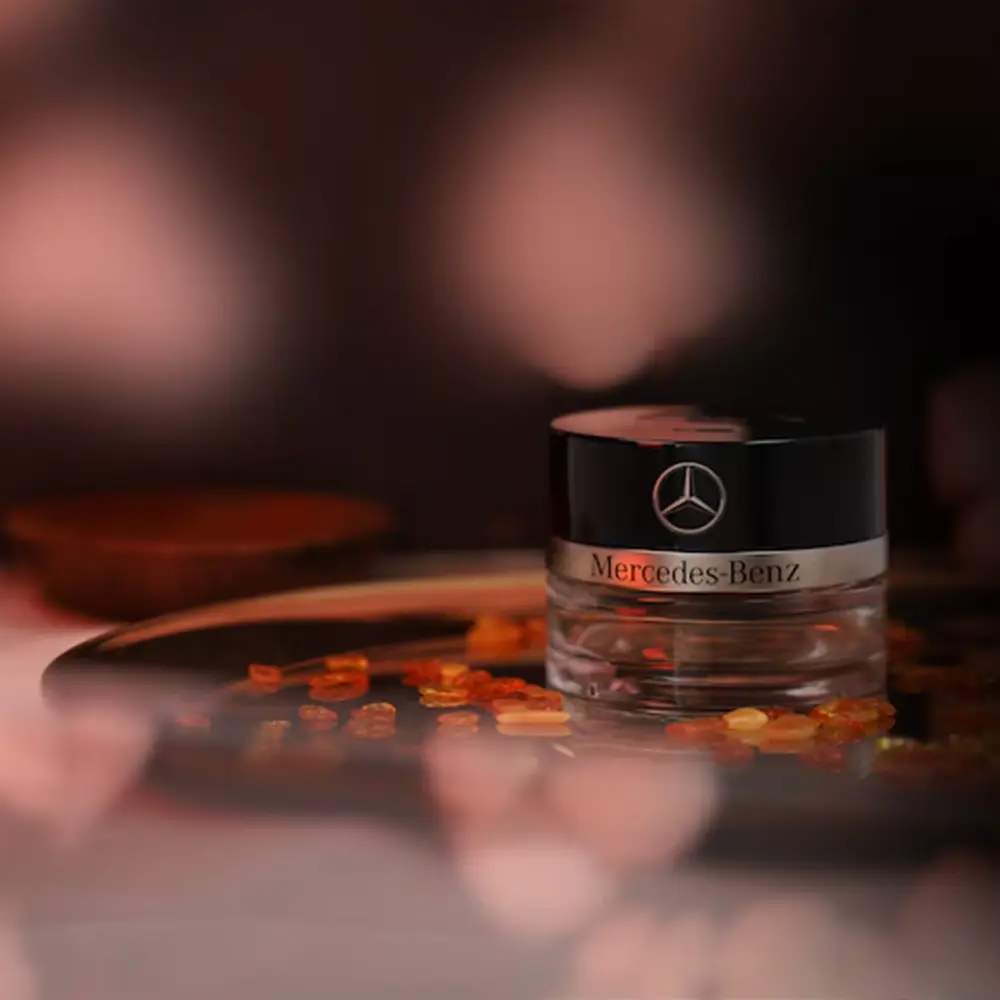 Edler Mercedes-Benz Flakon No.6 MOOD Hibiscus mit einem ausgleichenden, frischen Duft aus Hibiskus und Lemongrass. Die spritzigen Kopfnoten aus Bergamotte, Limette, Mandarine und grünen Blättern sorgen für belebende Energie, während Hibiskus, Veilchen und Jasmin in der Herznote sanfte Wärme und Erholung verleihen. Sandelholz, Zeder, Tonka und Moschus runden den Duft harmonisch ab – ideal für jeden Tag und jeden Moment der Balance.