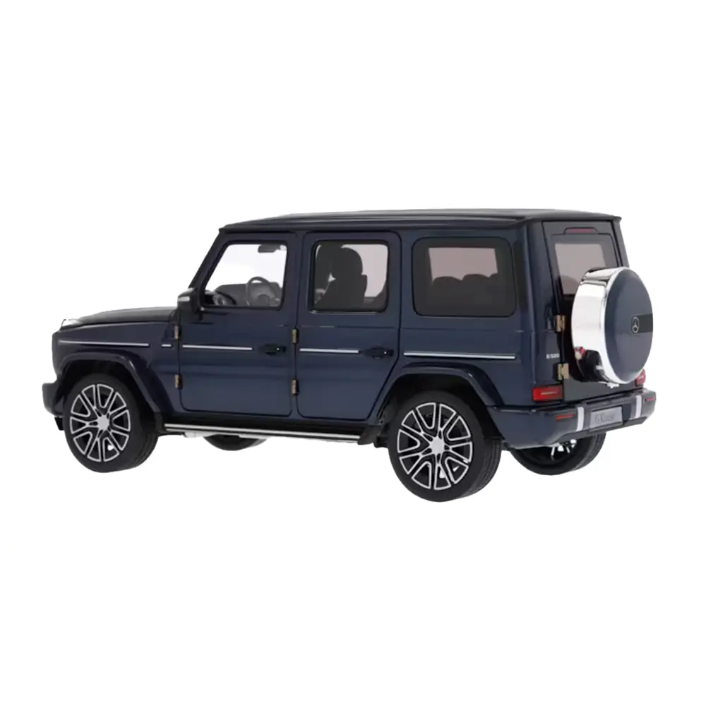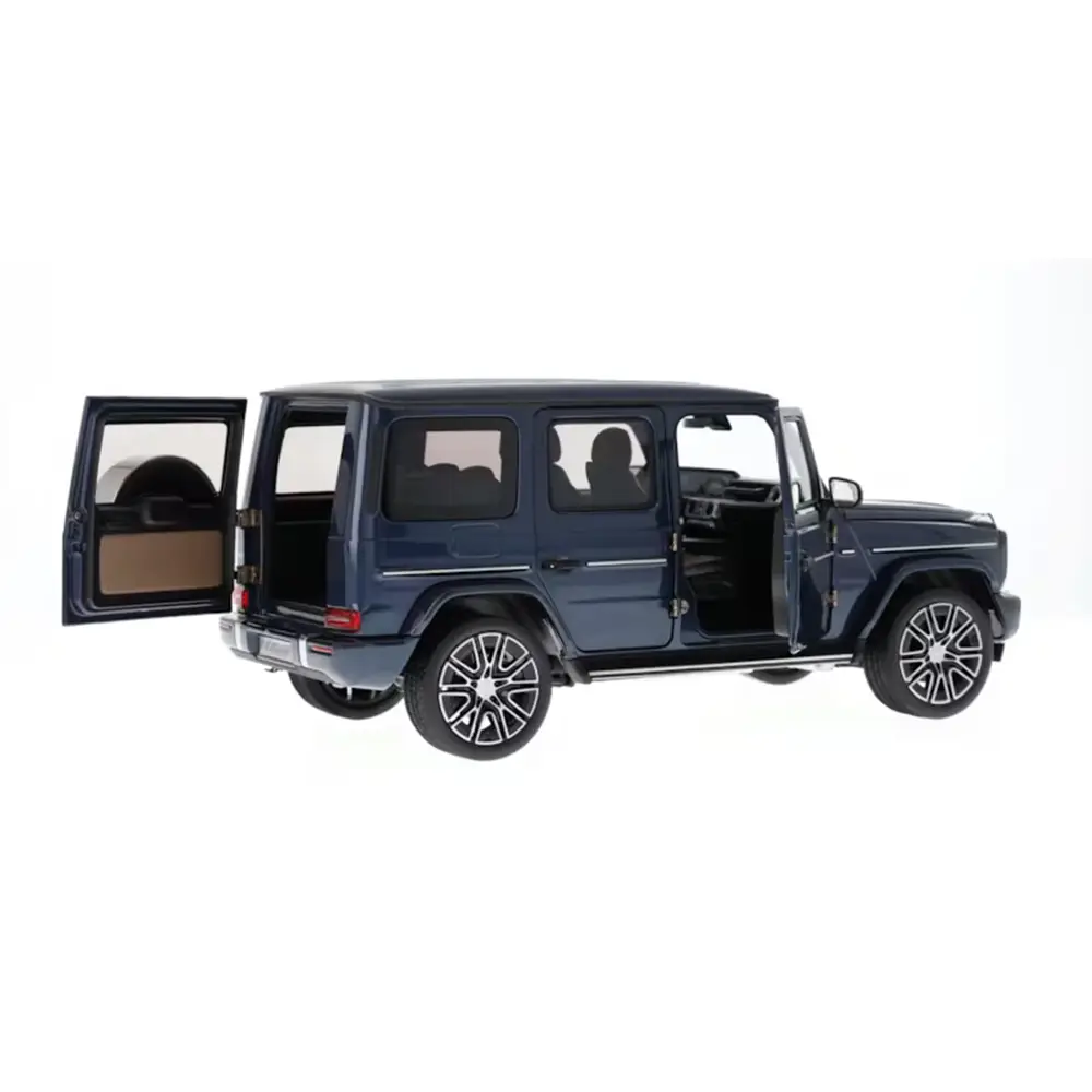 Das Miniaturmodell der Mercedes-Benz G-Klasse AMG Line im Maßstab 1:18 überzeugt mit exakter Nachbildung nach original CAD-Daten und einer hochwertigen Lackierung in sodalithblau. Türen, Motorhaube und Heckklappe lassen sich öffnen und geben den Blick auf ein detailreich gestaltetes Interieur frei. Ein echtes Sammlerstück für Liebhaber der legendären G-Klasse.