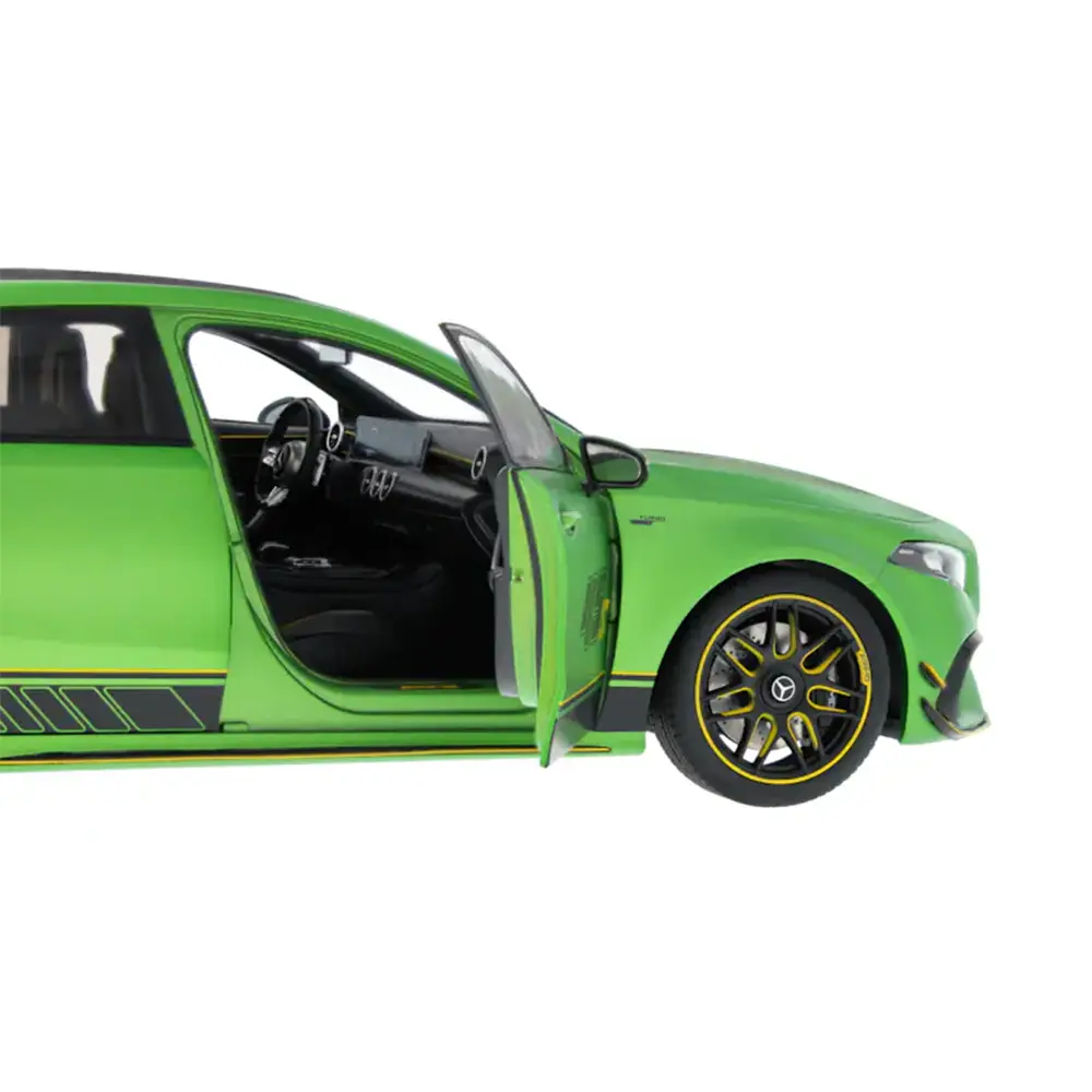 Ein echtes Highlight für Sammler und AMG-Fans: Das auf 1.000 Exemplare limitierte 1:18 Modellauto des Mercedes-AMG A 45 S 4MATIC Final Edition besticht durch sein markantes Sonderdesign in Green Hell Magno. Türen, Motorhaube und Kofferraum lassen sich öffnen und geben den Blick auf den detaillierten Innenraum frei. Gelbe Akzente, sportliche Linien und eine hochwertige Verarbeitung machen dieses Modell zu einem echten Sammlerstück.